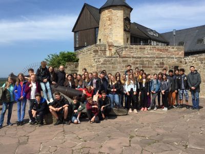 Für die Zeit vom 14.-19. Mai hatten engagierte Gastfamilien die Jugendlichen eingeladen, und die gesamte Fachschaft Französisch des Schwalmgymnasiums hielt für den Besuch ein abwechslungsreiches Programm bereit. In Marburg ging es mit einer deutsch-französischen Stadtführung hinauf bis zum Schloss und durch die verwinkelten Gassen der Universitätsstadt. Treysa wurde mit einer Stadt-Rallye erkundet, nachdem die Gruppe von dem Bürgermeister offiziell begrüßt worden war. Begeistert zeigten sich die Gäste auch von dem Ambiente des Naturlehrgebiets, wo alle Gastfamilien und die Lehrkräfte eine fröhliche Feier ausrichteten. Bei einem ganztägigen Ausflug zum Edersee lernten die Jugendlichen auf Schloss Waldeck die mittelalterlichen Sitten und Gebräuche – nicht zuletzt die Foltermethoden - kennen und sie bestaunten das See-Panorama sowohl von der Schlossterrasse als auch später vom Baumkronenpfad aus. Besonders viel Spaß gab es bei den zahlreichen Abfahrten mit dem Sommer-Bob.