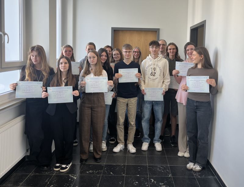 Siebzehn Schüler und Schülerinnen des Schwalmgymnasiums konnten nun endlich stolz ihre DELF-Diplome in Empfang nehmen. Um dieses international anerkannte Zertifikat für Französisch als Fremdsprache zu erlangen, mussten sie im März 2025 in zentralen schriftlichen und mündlichen Prüfungen ihre Fähigkeiten in den Bereichen Hörverstehen, Leseverstehen, schriftliches Ausdrucksvermögen und Sprechfertigkeit im Kontakt mit französischen Muttersprachlerinnen unter Beweis stellen.